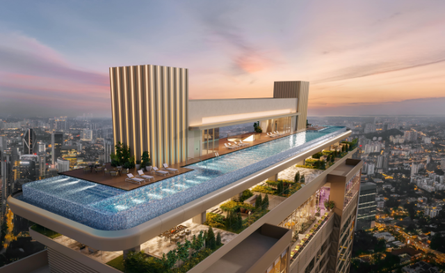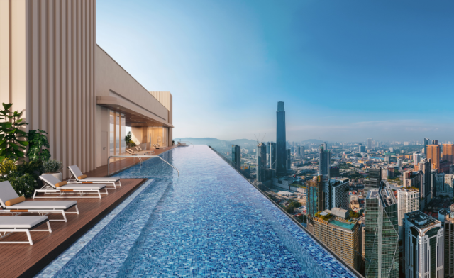Includes a distinctive 118-metre pool designed as a feature leisure space with elevated city views.