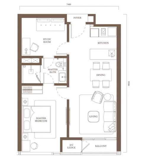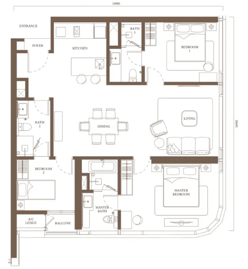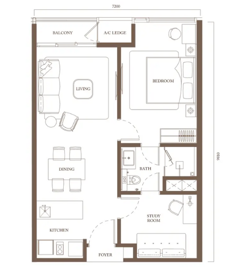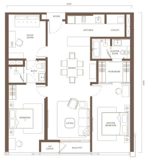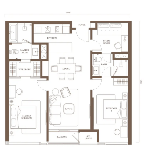 Type C3 – 2 Bedroom + Study 1100 sqft